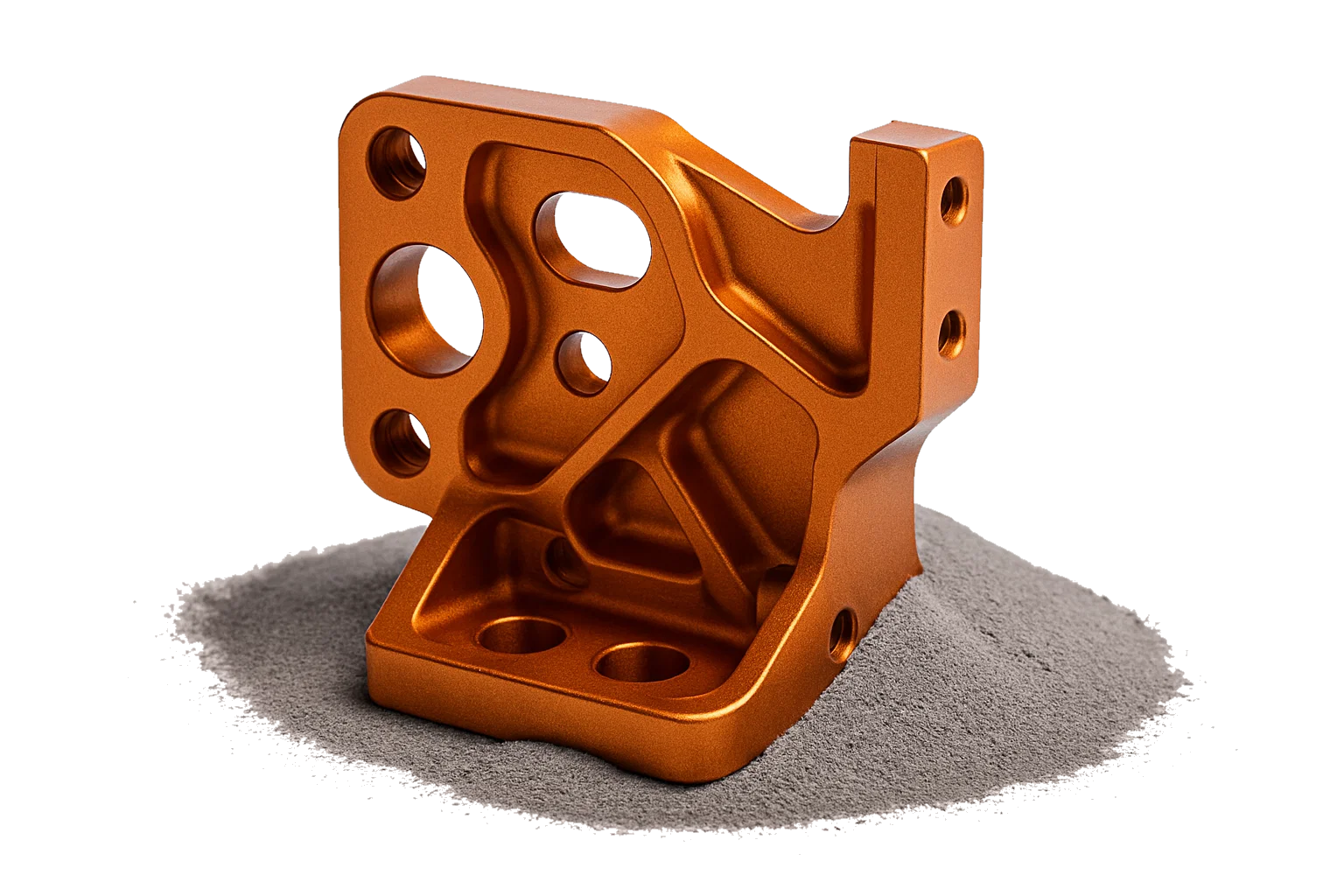 Na het 3D-metaalprintproces zorgen wij voor een hoogwaardige afwerking van elk onderdeel. Onze nabewerkingen omvatten onder andere CNC-verspaning voor nauwkeurige toleranties, polijsten voor een glad en glanzend oppervlak, anodisatie in diverse kleuren en duurzame poedercoating. Zo leveren wij precisieonderdelen met een industriële uitstraling en een perfecte pasvorm.